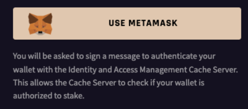 You will be asked to sign a message with your wallet. This enables the Identity Access Management (IAM) Cache Server to check your EW Chain wallet’s authorization to stake.