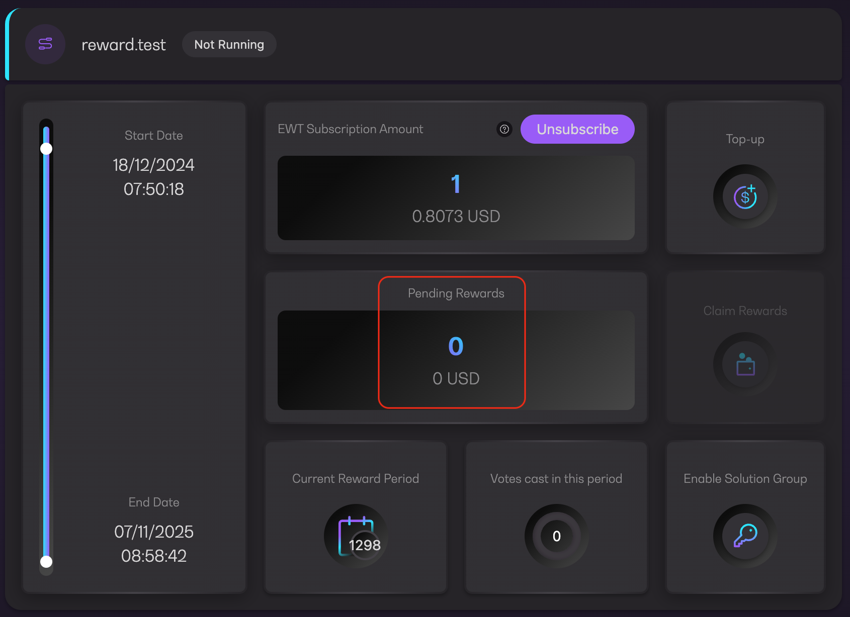 1. Click `Claim Rewards` button either in Dashboard or manage subscription page