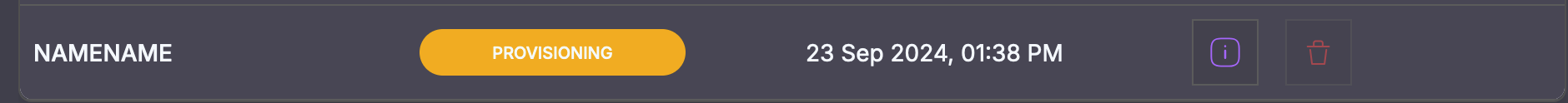 After several minutes, you will receive a notification regarding the provisioning of your Worker node, and its status will change to "Provisioning". You can already access your node details via the "i" icon on the right of your node overview.