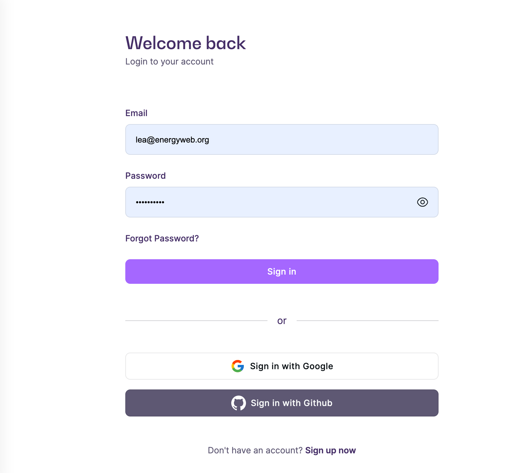 You need to have an account to use Launchpad. If you are part of a Member organization, you can sign in with the login and password provided by the Energy Web team.Otherwise, you will need to create a new account.