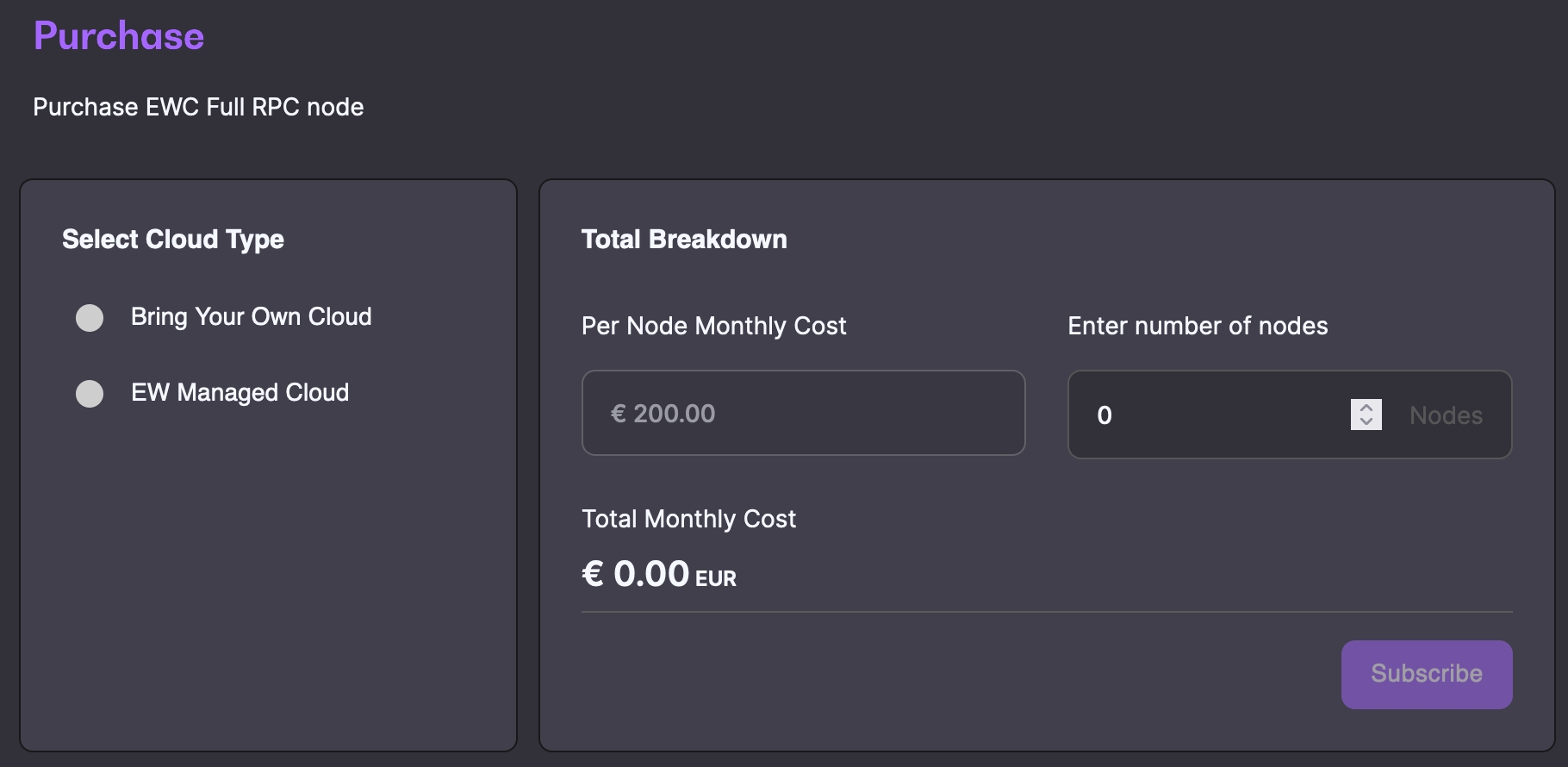 Under Worker Node in the left hand bar, go to "Purchase" and fill in the purchase form