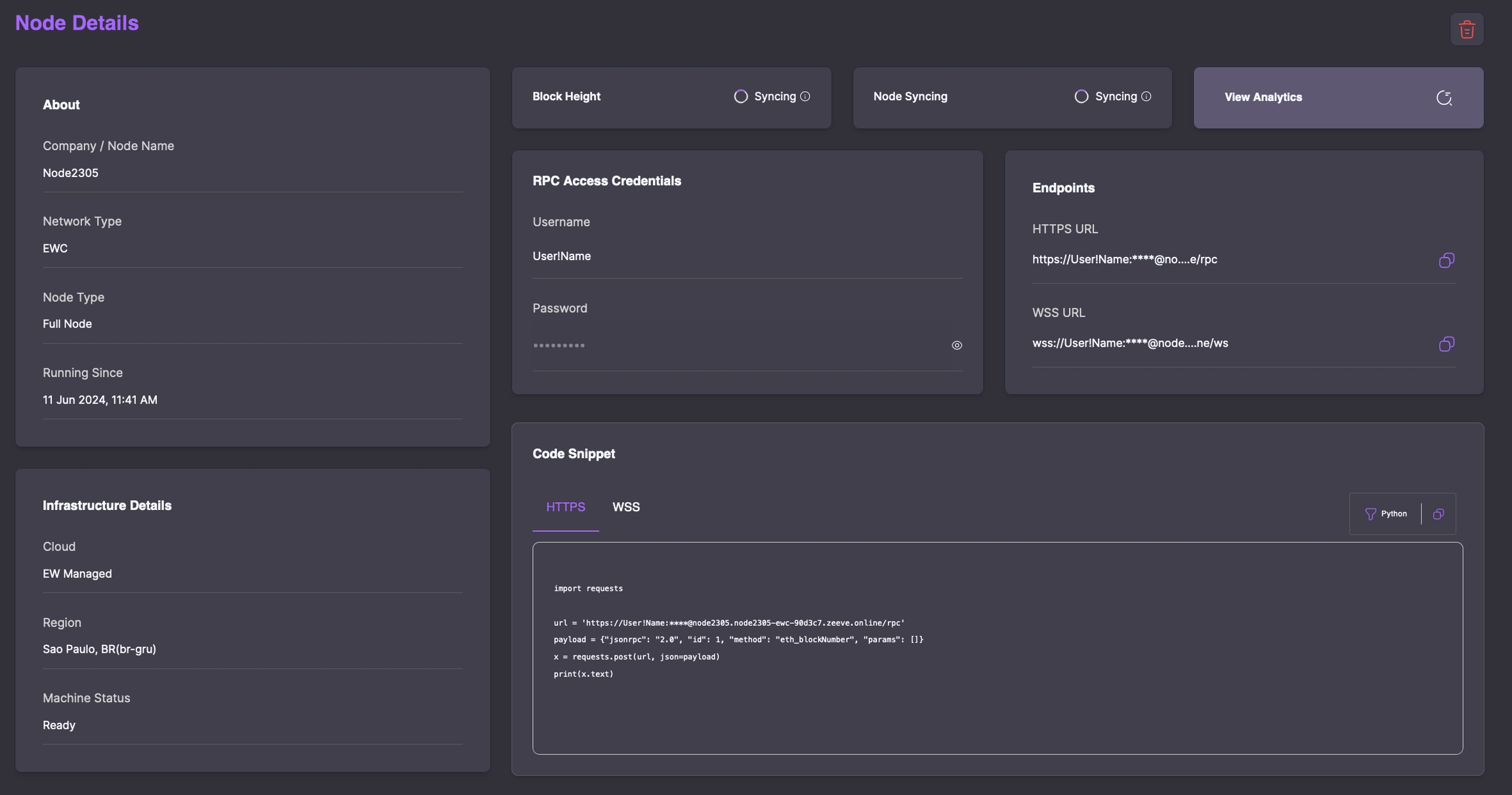 To learn more about your node and update any details post-deployment, head to the details via the "i" button on your node overview under the Manage screen.